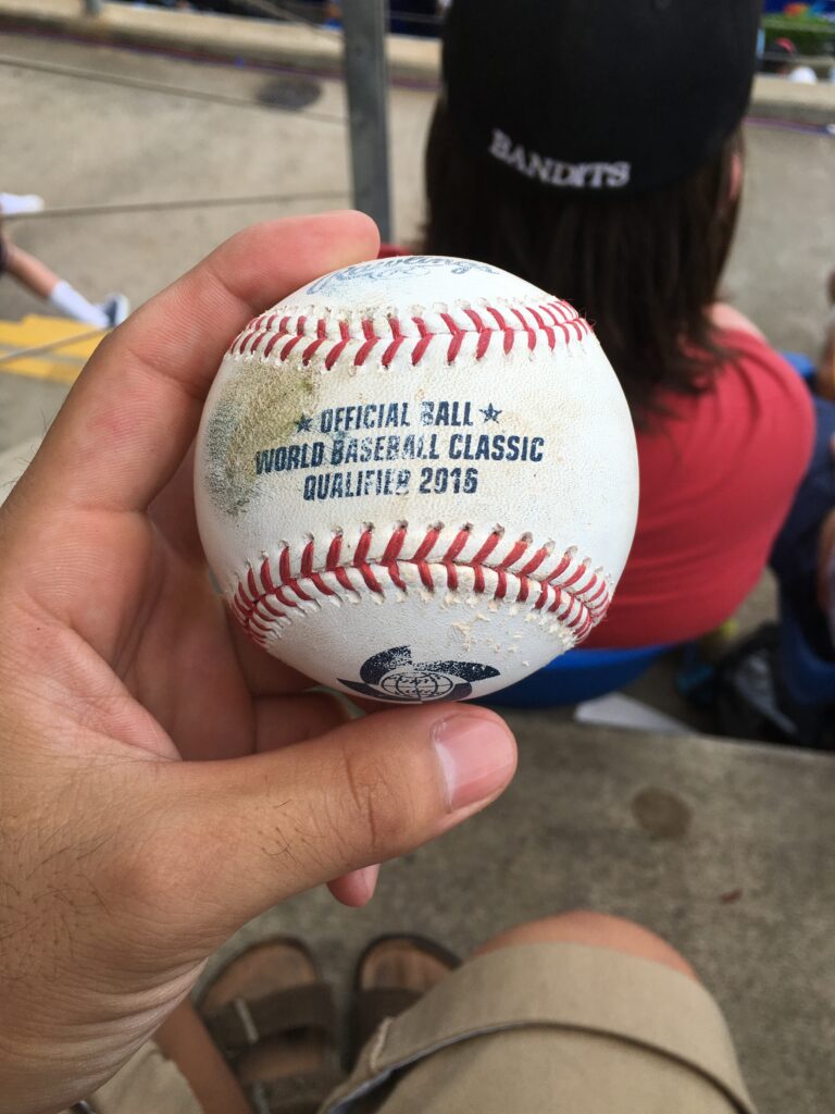 ↑2016年のWBC予選時のボール。たまたま手に入った