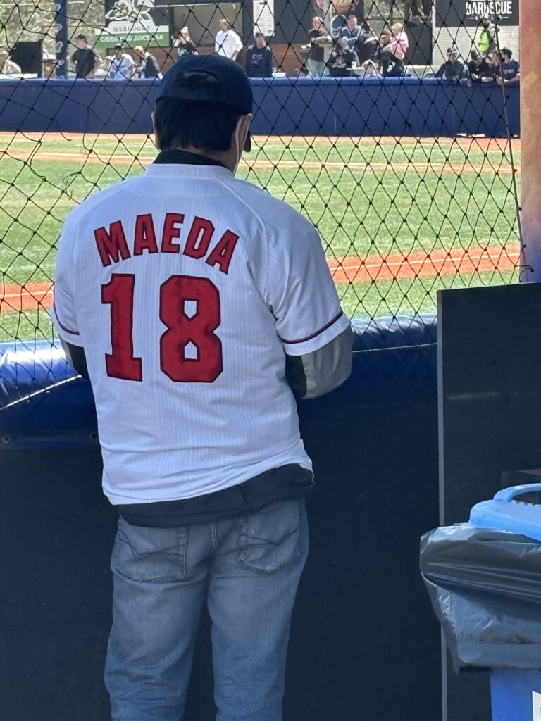 ↑メルボルンの球場にいた広島時代の前田健太投手のユニフォームを着てる人